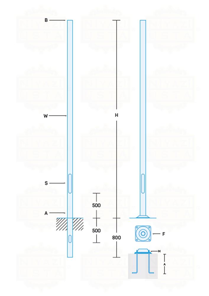 | Ürün Kodu | Direk Yüksekliği | Alt Çap | Üst Çap | Kalınlık | Sigorta Kapağı | Flanş Ölçüleri ve Kalınlık |