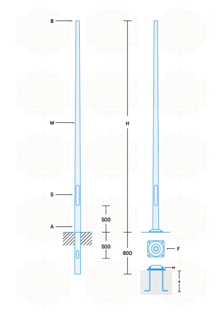 | Ürün Kodu | Direk Yüksekliği | Alt Çap | Üst Çap | Kalınlık | Sigorta Kapağı | Flanş Ölçüleri ve Kalınlık |